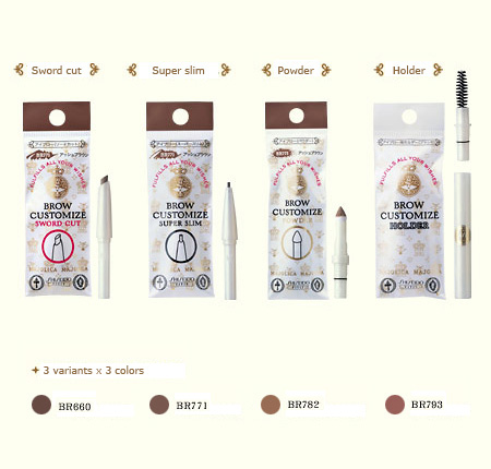 Those of us in the U.S. associate Shiseido with premium skin care and cosmetics, but in Asia, Shiseido has several brands sold through drugstores. One of these brands is Majolica Majorca. Majolica Majorca offers Brow Customize, in which you hook up different cartridges to a holder to create a custom pencil.