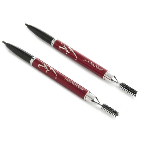 I use the powder to cover the brow and then the slant edge pencil or point-tip pencil to touch up those hairs that weren’t covered by the powder. These pencils are unusually hard. Brow experts often recommend a taupe color for the brows, regardless of brow color, so I use the powder in taupe. The cartridge cap holds the powder, and when it covers the applicator, it’s necessary to shake the assembly to dispense powder on the applicator. I use dark brown for the pencil.