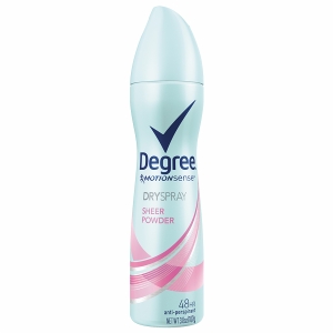 Dry deodorant/antiperspirant sprays are getting a lot of press in women’s magazines (probably to keep their advertisers happy). Unlike other sprays, they don’t require a dry-down time. I recently bought Degree MotionSense™ Dry Spray in Sheer Powder 48-hour antiperspirant. I chose Sheer Powder because my husband uses baby powder for a rub-down, and he smells so good!
