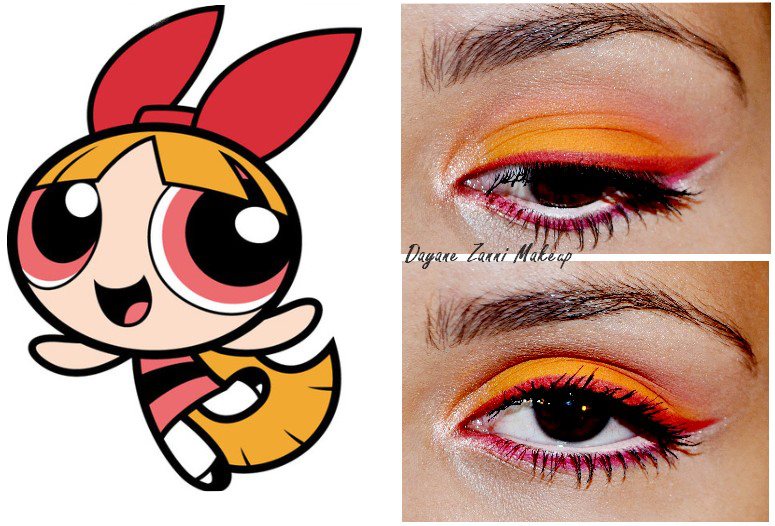 Bubbles is the sweet, girlish Powerpuff Girl. Here Dayane uses a blue and yellow eye makeup design inspired by Bubbles.
