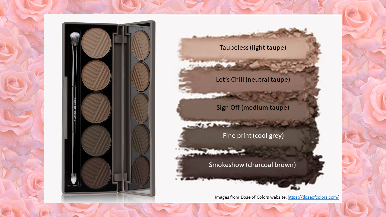 It’s a five-pan eyeshadow palette with a gradient of matte taupe shades of increasing intensity: